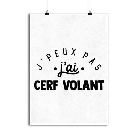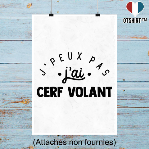 Affiche j'peux pas j'ai cerf volant 2 Une citation drôle et touchante. Un classique et une assurance de faire plaisir. Le cadeau idéal, imprimé en France, sur papier photo haute qualité, format A4 = 29,7 x 21cm, format A3 = 42 x 29,7cm. Otshirt est une marque déposée.